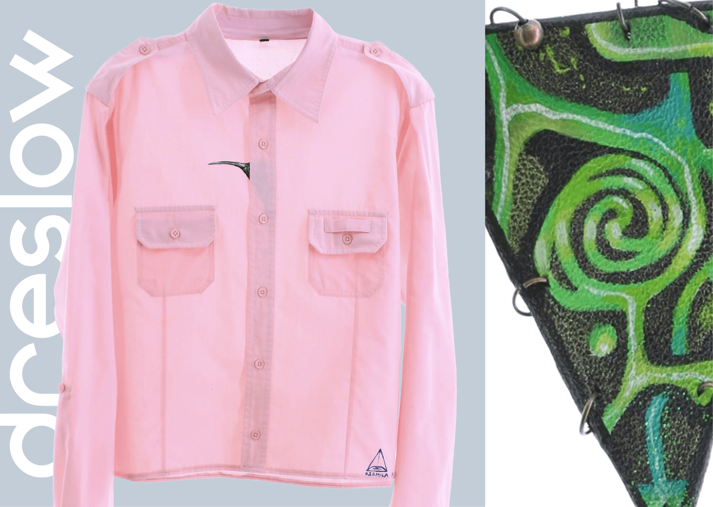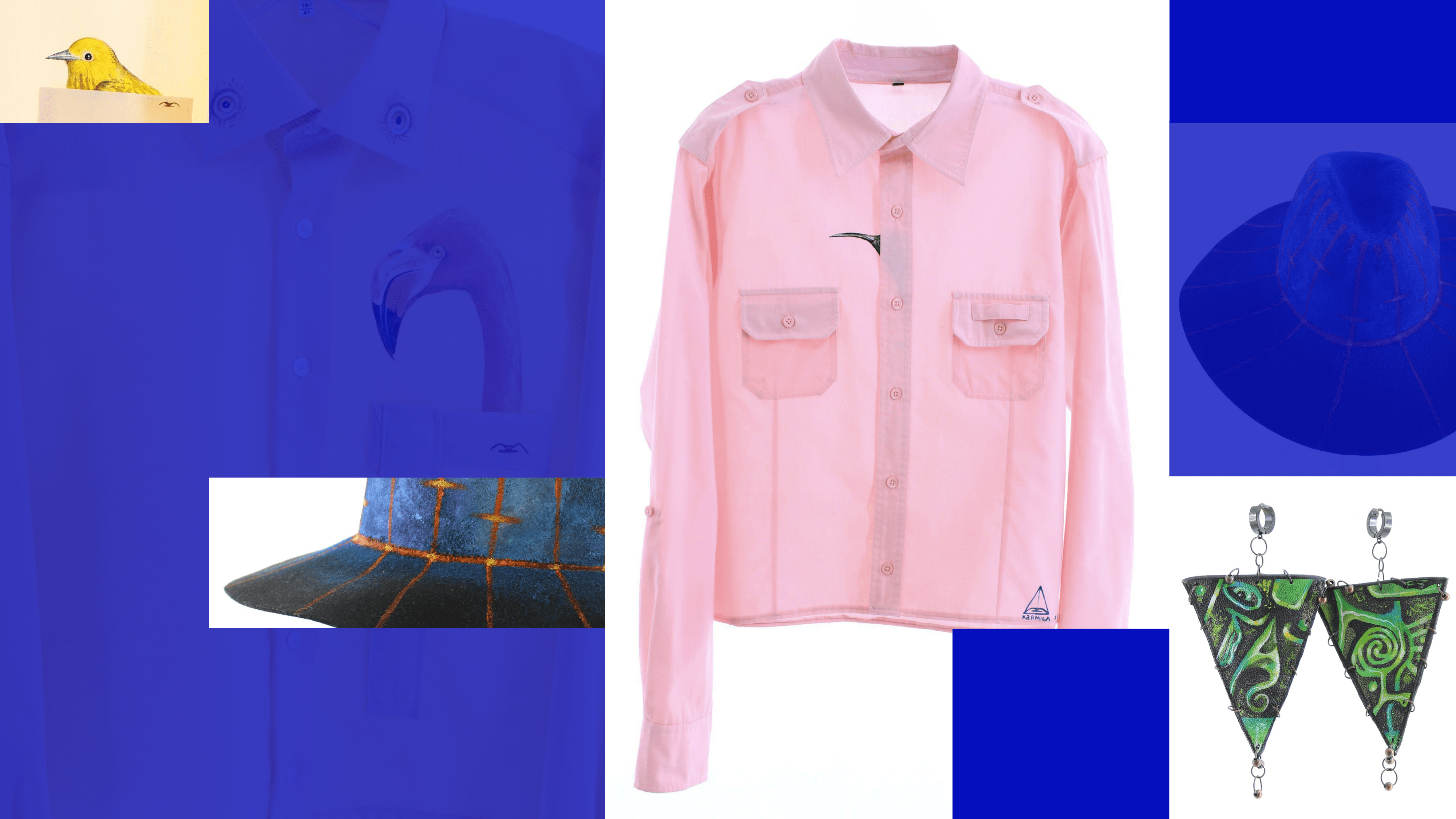 Dołącz element sztuki do dnia codziennego. Czy mamy jeszcze czas na beznadziejność i życie w bez jakości? Inspiracją do stworzenia kolekcji było moje malarstwo symboliczno – psychologiczne nasączone intensywności a kolorów, ptaki. Rzeczy które trafiają w moje ręce są już potencjalnym dziełem sztuki, i nie wypuszczam ich z rąk by tego potencjału nie wypełniły. Wierzę że każdy ciuch, element garderoby, biżuteria, którą tworzę ma piękną energię, która nie pozwala na to by trafiła w zapomnienie. Żywe obrazy chodzące po ulicach, uśmiech i ciekawość na twarzach przechodniów. Sztuka dla wszystkich – sztuka blisko Ciebie – sztuka cyrkularna = moda cyrkularna. W kolekcji zostały wykorzystane trwałe i naturalne tkaniny takie jak skóra czy bawełna. Biorąc kurtkę skórzaną w ręce mam do niej szacunek, i staram się pokazać do światła to piękno które zostało ukryte i zasypane kurzem, z metką “the end” następnie tą kurtkę (drugą skórę) przekazać komuś kto ją poczuję, doceni i zaopiekuję się nią. W koszulach wykorzystałam wiele technik krawieckich: cięcia, przeszycia, naszycia – malowanie na tkaninie, zabezpieczenie wysoką temperaturą. W skórach cały długi proces renowacji od odtłuszczenia po malowanie warstwowe, lakierowanie w efekcie końcowym natłuszczanie. W skład kolekcji wchodzą koszule malowane, bluzy sportowe malowane, biżuteria skórzana malowana, kapelusze, kurtki skórzane malowane, torebki skórzane malowane. Każdy element kolekcji został ozdobiony, poprzez malowane ręcznie unikatowe wzory, specjalistycznymi farbami.
