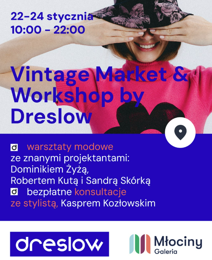 Przez trzy dni w przestrzeni Galerii Młociny funkcjonować będzie starannie wyselekcjonowany vintage market, pełen unikatowych perełek i ubrań marek premium, uzupełniony o program warsztatów kreatywnych, skierowanych do osób w każdym wieku. Do współpracy przy wydarzeniu Dreslow zaprosił trzech projektantów – Sandrę Skórkę, Roberta Kutę i Dominika Żyzę – reprezentujących różne podejścia do mody cyrkularnej i pracy z istniejącymi materiałami. Równolegle uczestnicy będą mogli skorzystać ze wsparcia stylisty Kaspra Kozłowskiego, dostępnego w butiku na poziomie 1, który w ramach bezpłatnych konsultacji doradzi przy komponowaniu zestawów i pokaże, jak świadomie wprowadzać ubrania z drugiego obiegu do codziennej garderoby.
